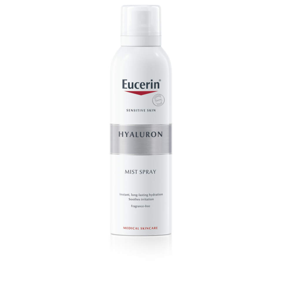 Sprej za lice sa hijaluronskom kiselinom i gliko-glicerolom koji omogućava trenutnu i dugotrajnu hidrataciju za nježnu i blistavu kožu. Poboljšava sistem za hidrataciju kože, ravnomjerno raspoređuje vodu, zadržava vlažnost. Za pravilno funkcionisanje, koži je potrebna voda. Dobro hidrirana koža je glatka i gipka i izgleda blistavo. Kada je prirodna zaštitna barijerna funkcija kože narušena, ona gubi vlažnost i može da postane dehidrirana. Dehidrirana koža izgleda umorno i zateže. Takođe je manje sposobna da se štiti od iritansa i stoga može da postane osjetljiva. Kako bi koža izgledala dobro, potrebna je intenzivna i dugotrajna hidratacija. Osvježavajući sprejevi koji ne sadrže hidratantne sastojke ne mogu efikasno da vežu vodu. Čista voda brzo isparava, ostavljajući kožu još suvljom nego prije. Jedinstvena formulacija Eucerin Hyaluron osvježavajućeg spreja za lice i tijelo poboljšava sistem za hidrataciju kože, ravnomjerno raspoređuje vodu, zadržava vlažnost i čini kožu glatkom i blistavom.