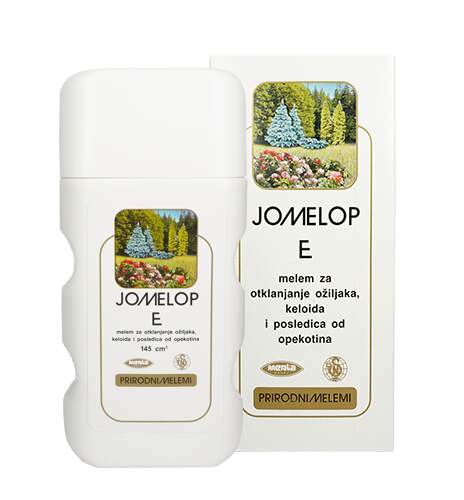 Jomelop E melem uspješno otklanja ožiljke, keloide i posljedice od opekotina. Vrlo efikasno djeluje kod opekotina prvog stepena. Veliki rezultat, ovaj melem je pokazao u skoro potpunom smanjenju odnosno otklanjanju ožiljaka i keloida nastalih od opekotina i drugih vrsta povreda.