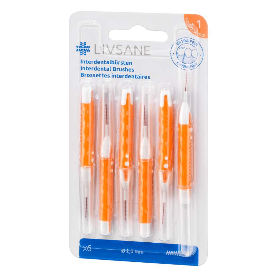 Livsane interdentalne četkice, extra fine su idealne za čišćenje normalnih i uskih prostora između zuba, kao i mostova i proteza. Obložena žica štiti usnu duplju. Nakon upotrebe isprati četkicu pod mlazom.