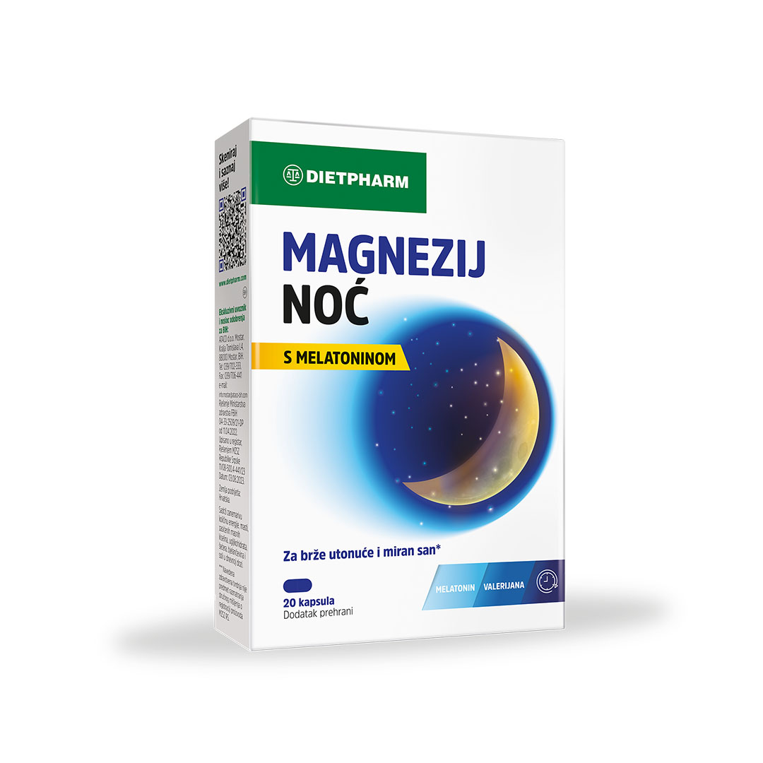Magnezijum noć je dodatak ishrani sa magnezijumom, vitaminom B6, melatoninom i valerijanom. Doprinosi mirnom snu , normalnom funkcionisanju organizma. Smanjuje umor i iscrpljenost.