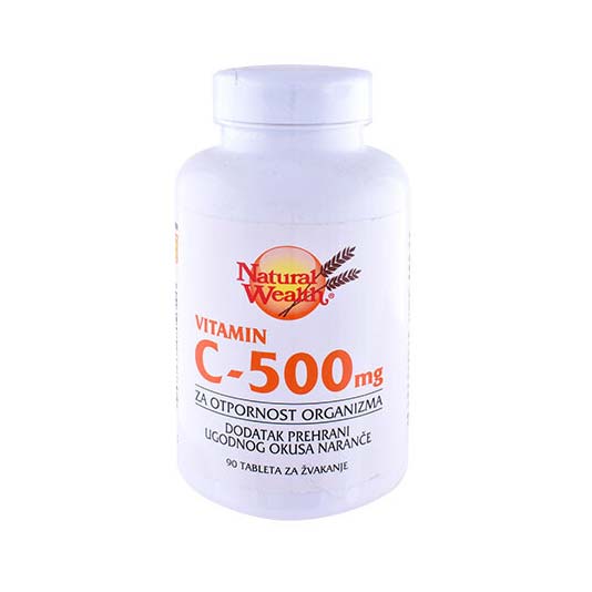 Vitamin C-500 za žvakanje jača otpornost organizma, štiti ćelije od oksidativnog stresa i doprinosi normalnom stvaranju kolagena, za normalnu funkciju hrskavice, kostiju, krvnih sudova, kože, desni i zuba. Preporučuje se sportistima, pušačima, osobama izloženim stresu, trudnicama i dojiljama.