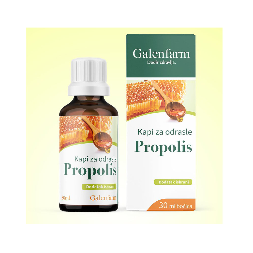 Kapi od propolisa za odrasle pomažu kod upale usta i grla, manjih oštećenja kože, podižu opštu otpornost organizma.