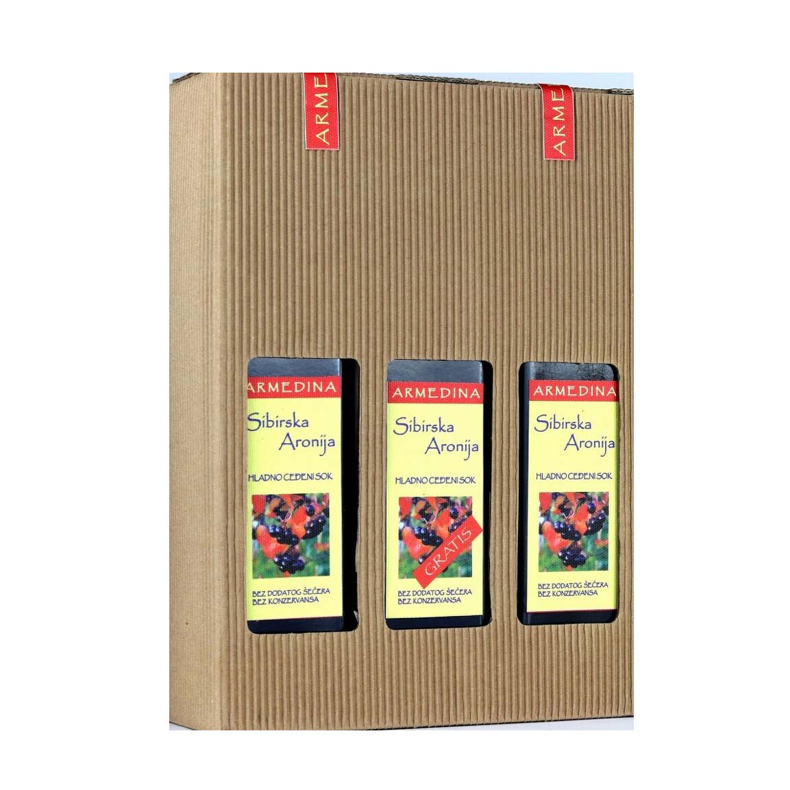 Sibirska aronija je čist, 100% prirodan, hladno cijeđeni sok, sa izuzetno moćnim antioksidativnim kapacitetom. Bobice Sibirske Aronije sadrže visok nivo polifenola, koji su mikronutrijenti sa antioksidativnom aktivnošću. U sklopu grupe polifenola, flavonoidi su posebno interesantni s obzirom da posjeduju i antioksidativna i antiinflamatorna svojstva. Bobice Sibirske aronije sadrže izuzetno visoku koncentraciju određenih flavonoida - antocijana i proantocijanidina. Sibirska Aronija, super voće, sadrži više antioksidanasa nego borovnica, brusnica, zova, malina. Mnogobrojna istraživanja su potvrdila zdravstvene benefite Sibirske Aronije. Pomaže kod kardiovaskularnih oboljenja, normalizuje krvni pritisak, pomaže kod dijabetesa, održava zdravlje urinarnog trakta, reguliše masnoće, ima antikancerogeni efekat i mnoge druge.