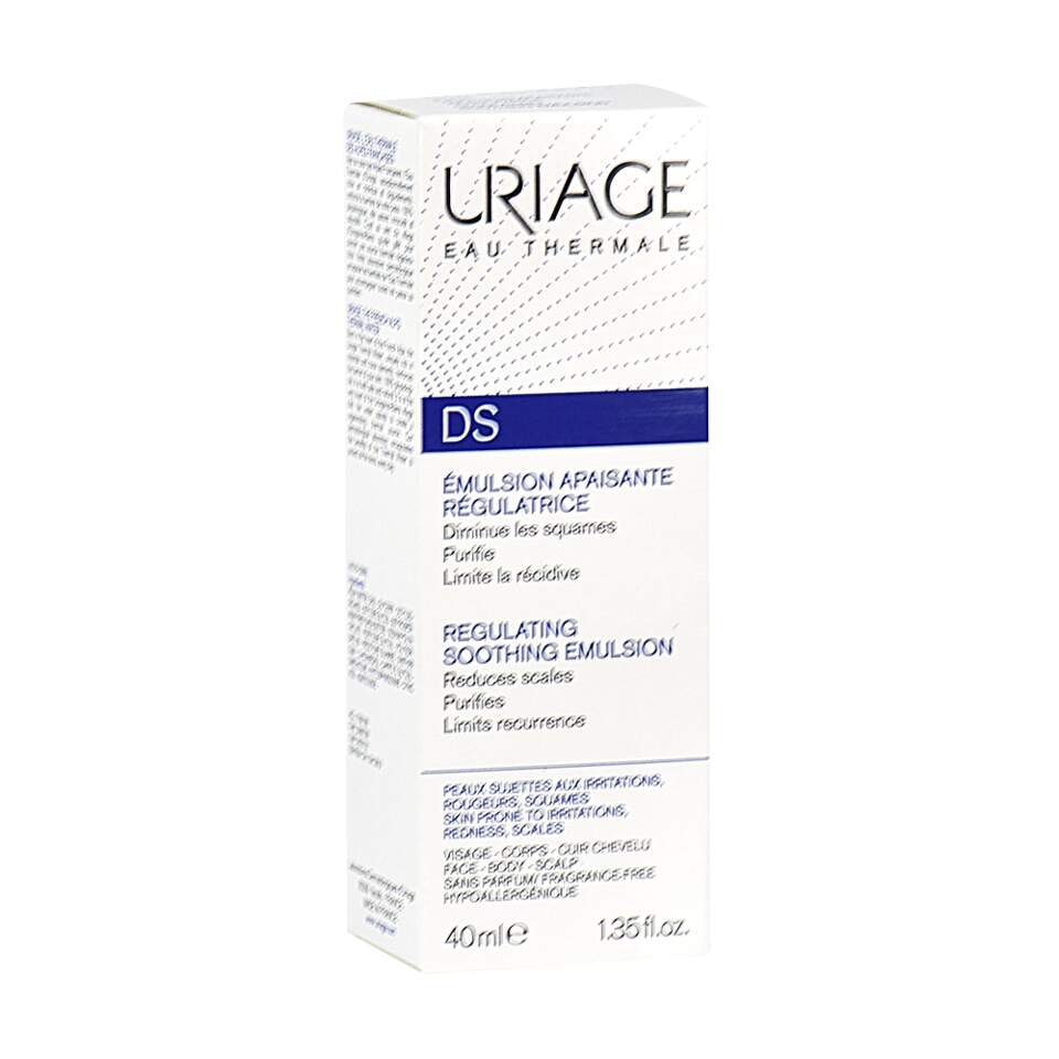 Uriage DS emulzija je hidrantna krema koja pročišćava i umiruje kožu zahvaljujući svojoj nemasnoj i laganoj teksturi. Krema sprečava perutanje kože zahvaljujući TLR2 kompleksu. Smanjuje crvenilo, svrab i perutanje kože, ovome doprinosi Uriage termalna voda. Pirokton olamin reguliše proliferaciju mikroorganizama. Illipe buter hrani kožu, glicerin štiti od isušivanja.