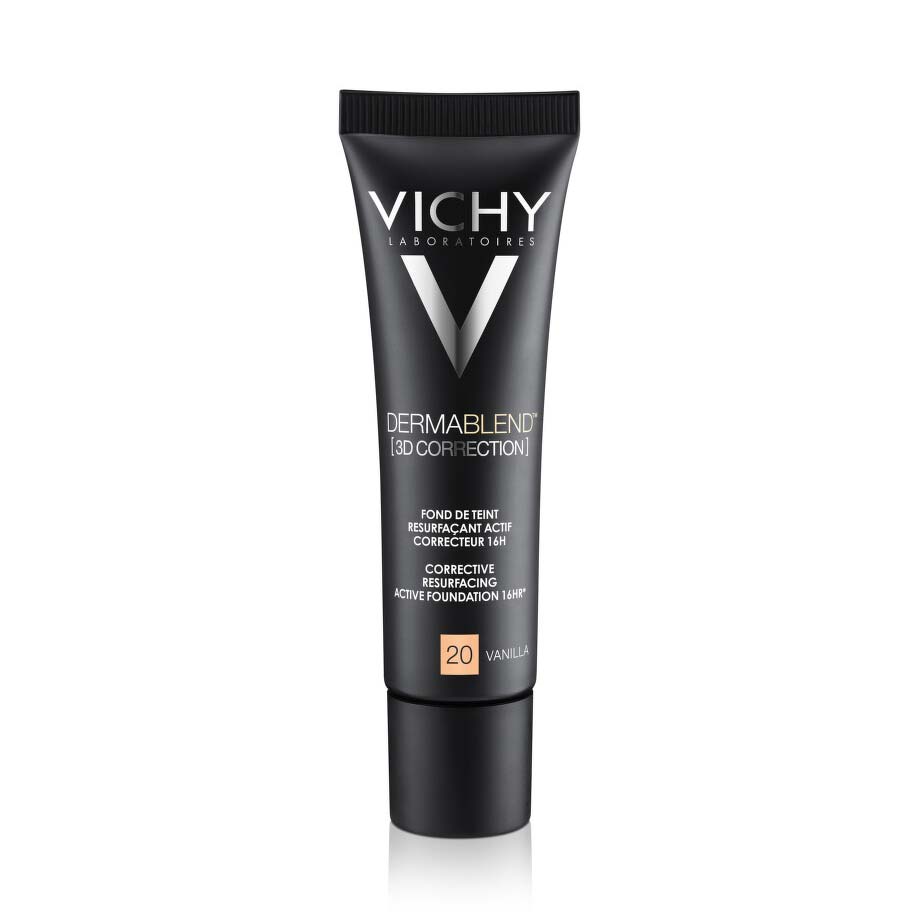 Dermablend [3D CORRECTION] koji preporučuju dermatolozi i koriste šminkeri, objedinjuje aktivne sastojke posebno odabrane da zadovolje potrebe masne kože sklone aknama. Njegova formula visoke moći prekrivanja omogućuje prekrivanje svih nepravilnosti na koži tokom 16h i bez efekta maske.