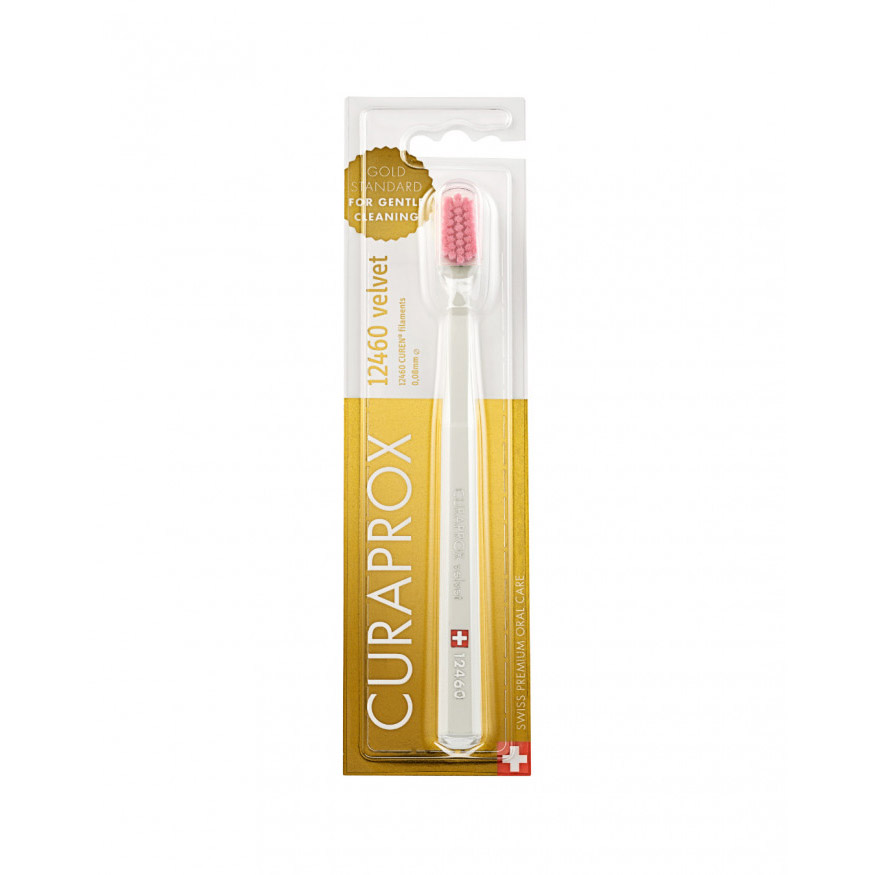 Četkica CS 12460 inovacija je u Curaprox asortimanu. CS 12460 velvet ujedinila je najbolje osobine četkice CS 5460, uz nekoliko dodanih prednosti. Na maloj glavi ima čak 12 460 gusto raspoređenih, izuzetno mekanih i tankih Curen® vlakana, promjera 0,08 mm. Osmougaona drška i blago savijena glava pružaju jednostavno čišćenje teže dostupnih mjesta u ustima. Četkica je namijenjena svima koji traže najmekše iskustvo četkanja, a posebno osobama s osjetljivim zubima i desnima.