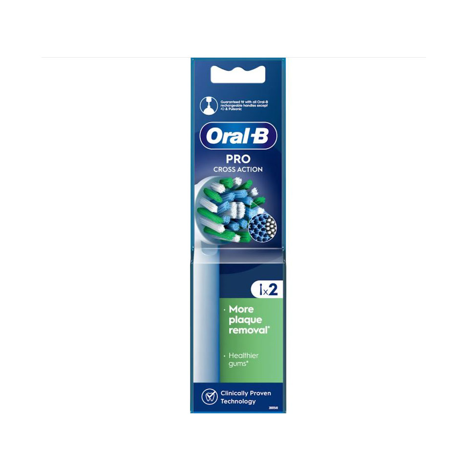 Kao jedna od premium zamjenskih glava za zubne četkice Oral-B, cross action ima precizno nakošena vlakna pod uglom od 16 stepeni. Ona ciljano uklanjaju do 100% više zubnih naslaga u poređenju s običnom klasičnom zubnom četkicom. Ove poboljšane glave Oral-B cross action koriste tehnologiju Clean Maximiser koja zelena vlakna pretvara u žuta te tako osigurava optimalne performanse glave četkice i najbolje čišćenje.