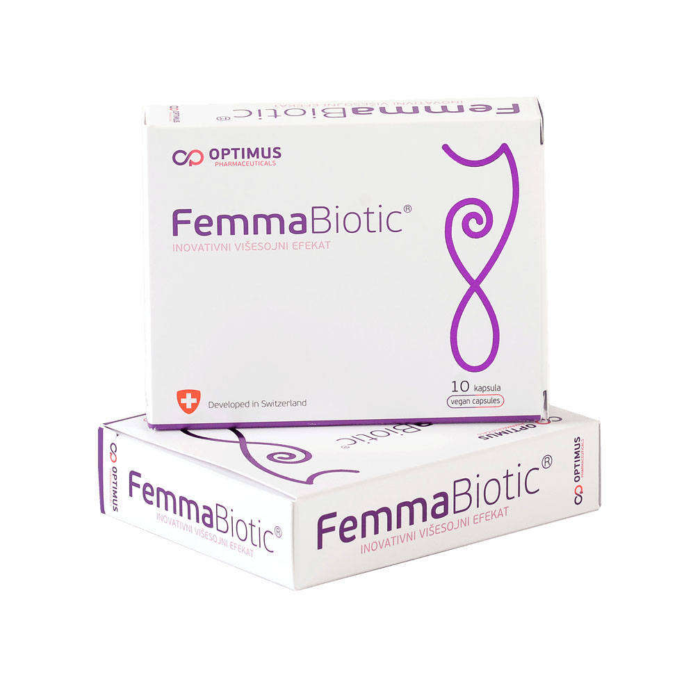 Femmabiotic je inovativni proizvod namijenjen svakoj ženi za obnavljanje vaginalne flore i sprečavanje nastanka vaginalnih i urinarnih infekcija. Normalna vaginalna flora je od velikog je značaja za kompletno zdravlje žene i predstavlja prirodnu zaštitu od vaginalnih infekcija. Vaginalnu floru čine ,,dobre“ bakterije – laktobacili, koji sprečavaju rast i razmnožavanje štetnih mikroorganizama i na taj način sprečavaju nastanak vaginalnih infekcija. Femmabiotic obnavlja vaginalnu floru, povećava broj laktobacila, reguliše vaginalni pH i sprečava nastanak vaginalnih ali i urinarnih infekcija. Kliničkim studijama je potvrđeno da su najzastupljeniji sojevi laktobacila u vaginalnoj flori kod žena naših podneblja upravo oni koji se nalaze u Femmabiotic-u, pa možemo reči da je Femmabiotic specijalno formulisan i namijenjen svim ženama na našim područijima.