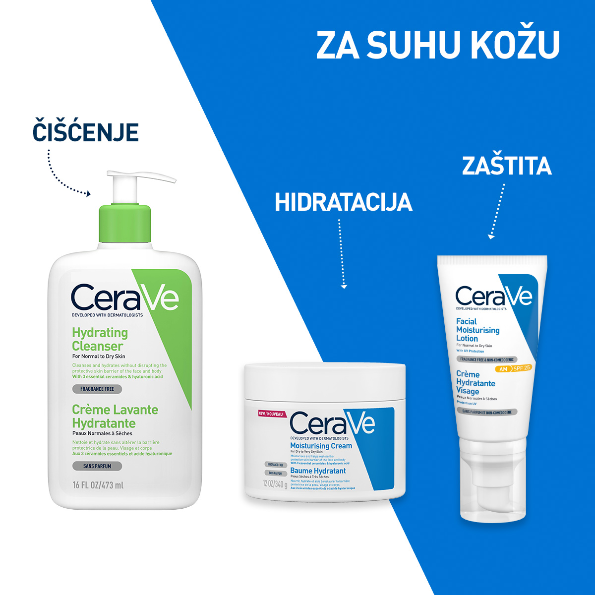 Hidratantna i umirujuća emulzija za čišćenje za normalnu i suvu kožu lica i tijela. Posebno je formulisana za osjetljivu kožu lica koja je sklona iritacijama, uključujući ekceme. Ova emulzija bez pjene i bez sapuna nježno uklanja prljavštinu i ulje, a istovremeno povećava hidrataciju kože nakon samo jedne upotrebe. Sadrži hijaluronsku kiselinu i 3 esencijalna ceramida za zaštitu prirodne barijere kože. Čisti i hidrira bez narušavanja zaštitne barijere kože lica i tijela. Bez mirisa i sapuna, hipoalergen, nekomedogen proizvod. Preporučuje se upotreba u kombinaciji sa CeraVe hidratantnom njegom za lice. Pakovanje sadrži 1 l.