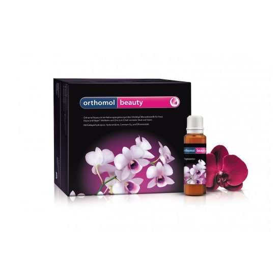 Svojom inovativnom kombinacijom kolagena, hijaluronske kiseline i koenzima Q10, ovaj napitak nudi višestruku prednost. Kožu i vezivno tkivo snabdijeva hranjivim materijama koje obnavljaju elastičnost, zategnutost i vlagu. Peptidi kolagena stimulišu fibroblaste (ćelije vezivnog tkiva) da proizvode veće količine kolagena. Kolagen i hijaluronska kiselina su ključni za snagu i količinu vlage u koži i vezivnom tkivu. Orthomol Beauty kombinuje ove dvije materije s drugim važnim mikronutrijentima za kožu, kosu i nokte. Sadrži kombinaciju esencijalnih vitamina i koenzima Q10 sa fitoekstraktom masline. Vitamin C doprinosi normalnom stvaranju kolagena potrebnog za normalnu funkciju kože. Vitamin C, vitamin E, cink i selen doprinose zaštiti ćelija od oksidativnog stresa. Biotin i cink doprinose održavanju normalne kože. Selen, biotin i cink doprinose održavanju zdrave kose. Selen i cink doprinose održavanju zdravih noktiju. Pakovanje sadrži 7 bočica od po 22 g.