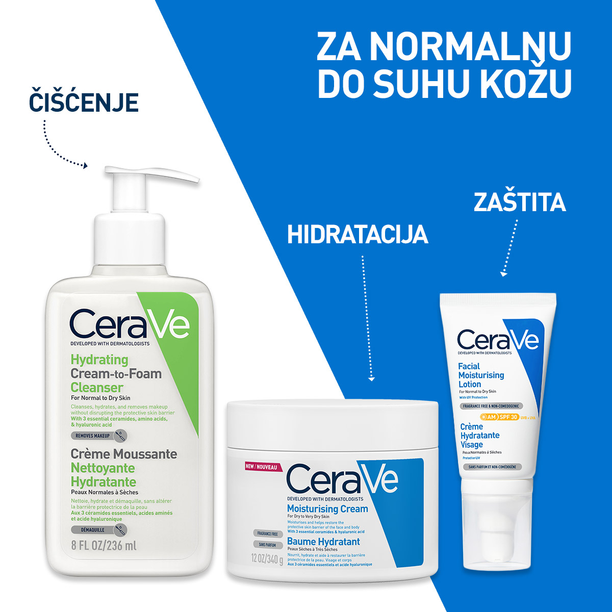 S 3 ceramida koji prirodno postoje u koži te hijaluronskom kiselinom, sastojcima neophodnim za podršku kožnoj barijeri i zadržavanje vlage. Koristi patentiranu tehnologiju MVE za nadoknadu ceramida i kontrolisano otpuštanje dugotrajne hidratacije.