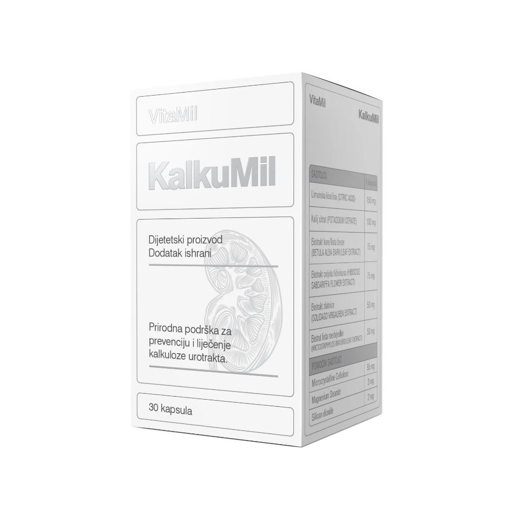 KalkuMil je dodatak ishrani osmišljen za osobe koje imaju problema sa kamencima u mokraćnim putevima – bilo da se radi o prevenciji njihovog nastanka, razbijanju manjih formacija, ili smanjenju rizika od ponovnog pojavljivanja.