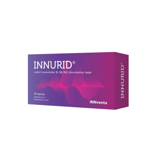 INNURID je dodatak ishrani koji sadrži uridin-5-monofosfat, vitamine B kompleksa (B1, B6, B12, folnu kiselinu) i bakar, koji doprinose normalnom funkcionisanju nervnog sistema, normalnoj psihološkoj funkciji i smanjenju umora i iscrpljenosti.