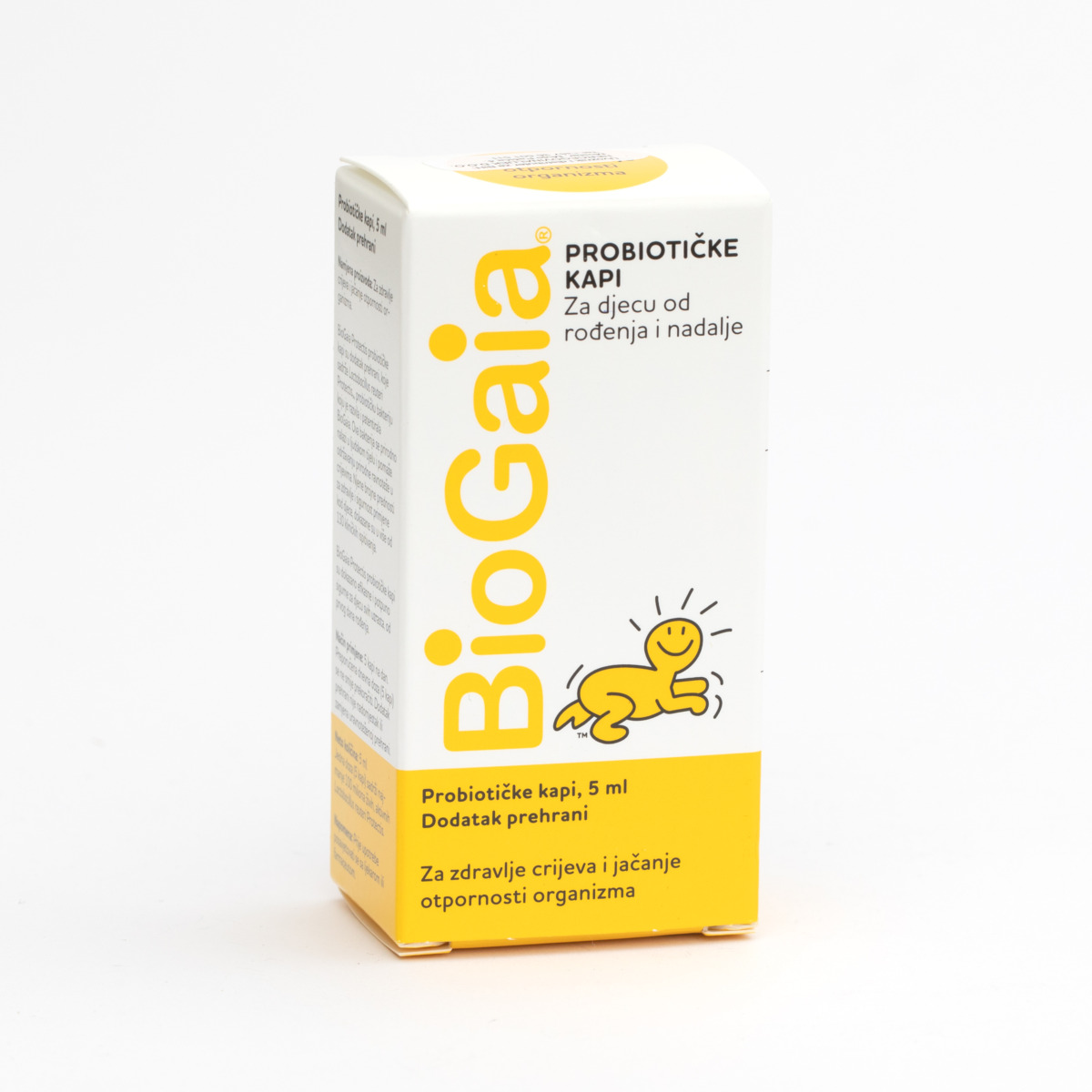 Biogaia termostabilne kapi sadrže žive aktivne bakterije Lactobacillus reuteri Protectis koje obnavljaju crijevnu floru kod beba. Bezbjedne su za upotrebu od prvog dana rođenja. Prirodnog su porijekla jer se Lactobacillus reuteri Protectis dobija iz majčinog mlijeka.